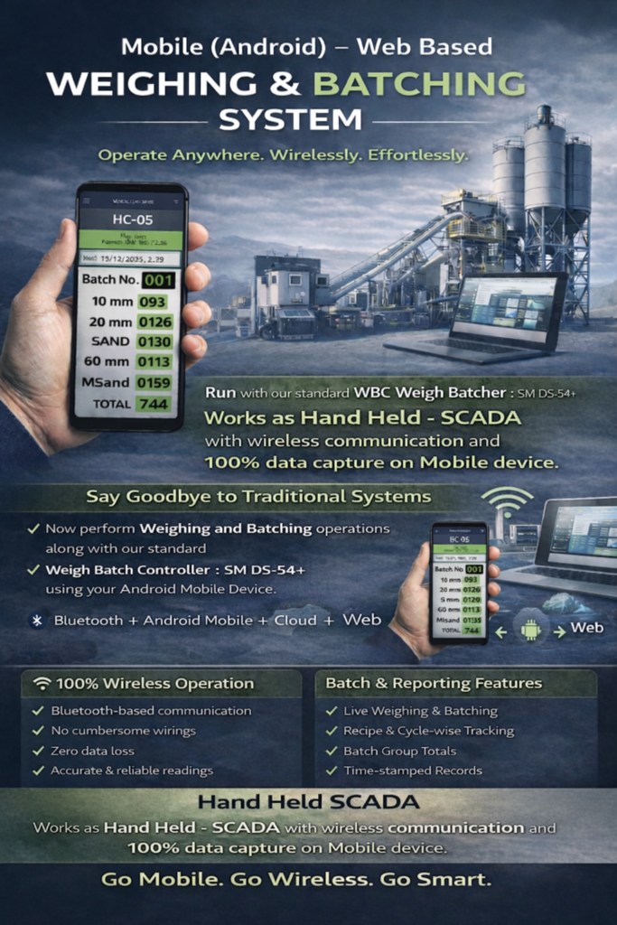 Now perform Weighing and Batching operations (directly) alongwith our standard Weigh Batch Controller : SM DS-54+ from your Android Mobile Device……